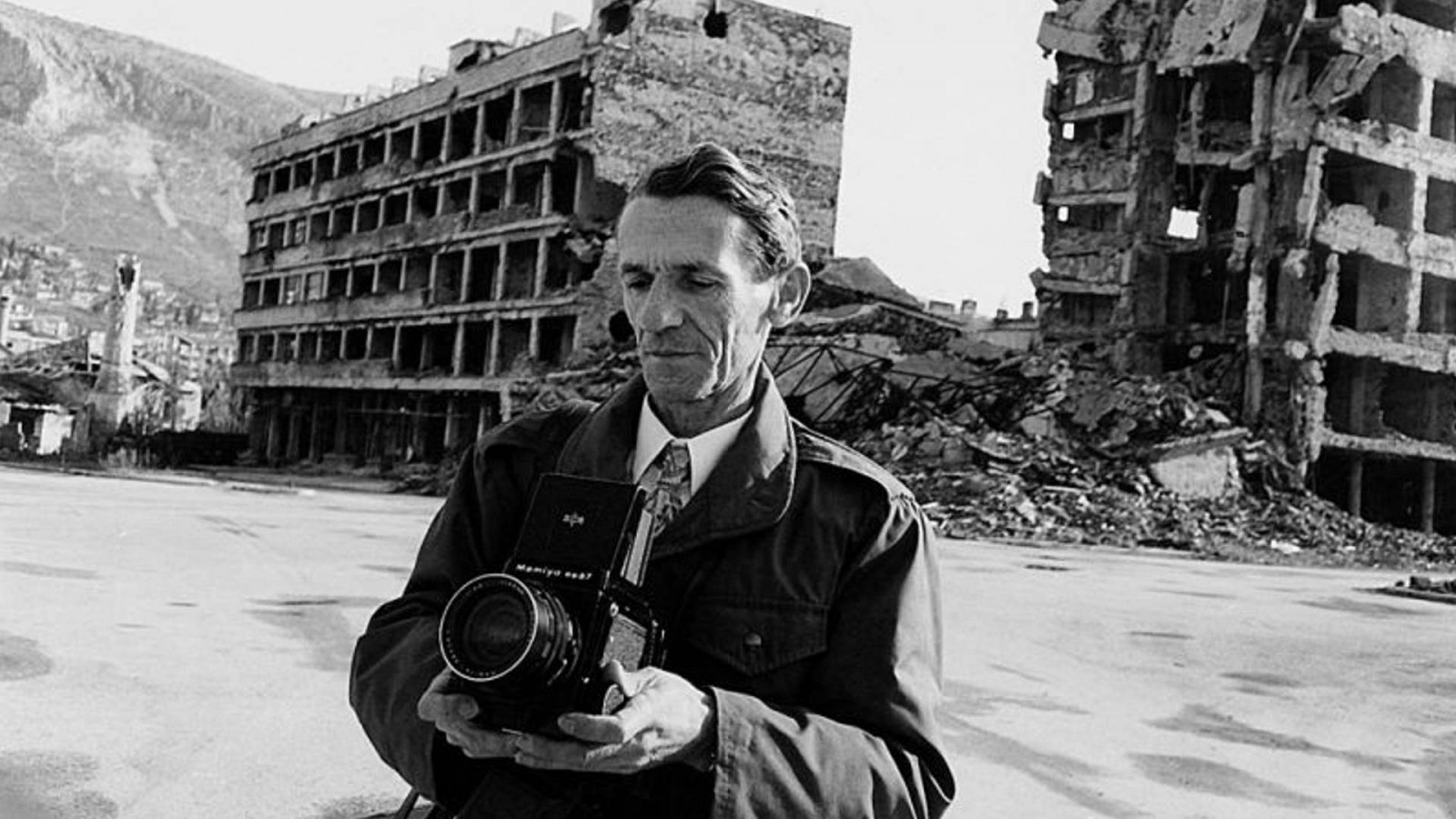 Begleitet wurde Koschnick während dieser Zeit von Mirjam Quinte und Pepe Danquart. Sie berichten von dem Versuch, eine Stadt wiederzubeleben, in Schwarzweiß, in der Farbe und im Format der Wochenschauen. Ruhige Bilder von Menschen, in deren Gesichtern die tragischen Spuren des Krieges zum Ausdruck kommen. Sie zeugen von Nähe und Vertrauen, die während der zwei Jahre Drehzeit zwischen dem Filmteam und den Menschen entstanden.