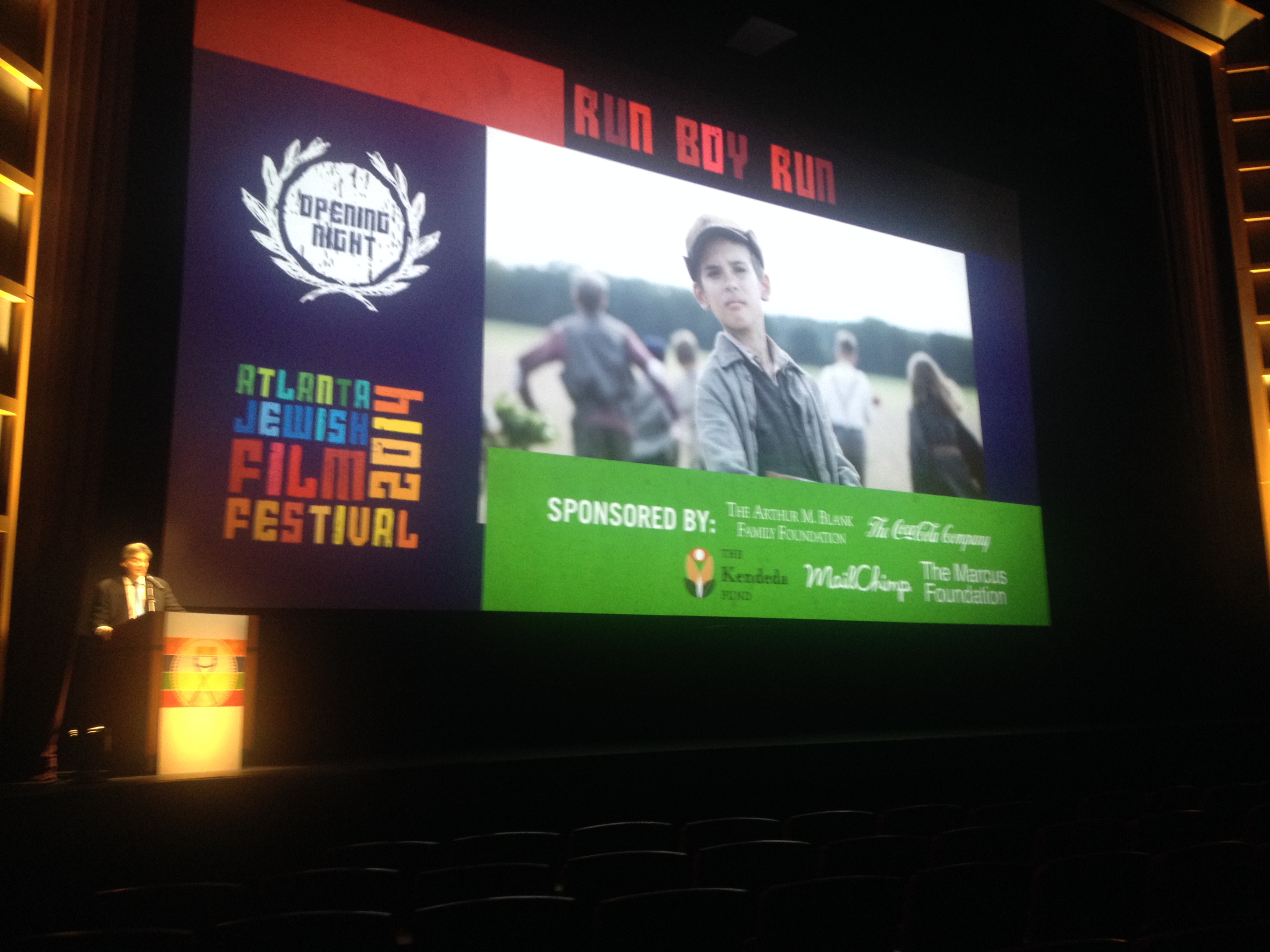 Am 17.4.2014 ist nun der offizielle Kinostart von LAUF JUNGE LAUF in Deutschland. Wir feiern Premieren in Halle, München und Berlin und hatten auch schon einige „Previews“ in der Welt. Eine der eindrücklichsten war die in Atlanta, Georgia USA, wo das neben San Francisco größte Jewish Filmfestival der Welt stattfindet. Der Film lief als Eröffnungsfilm vor mehr als 2000 Besuchern und wurde danach mit Standing Ovations gefeiert. Gänsehaut pur, wenn man da vorne auf der Bühne steht (siehe Foto‘s).